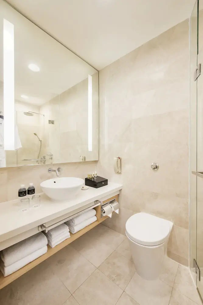 변기옆에 작은 샤워부스가 있고, 변기나 샤워기나 수압은 세지는 않았는데 잘 내려가긴 하더라고요. 온수도 잘 나왔습니다. 욕실 어메니티로는 비누, 샴푸, 린스, 바디워시, 칫솔, 치약, 면도기, 면도크림, 면봉, 화장솜 등 기본적으로 필요한 것들은 모두 있었습니다.