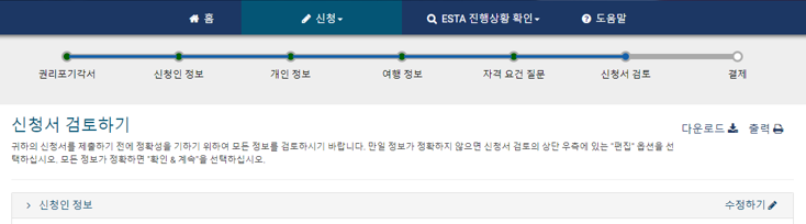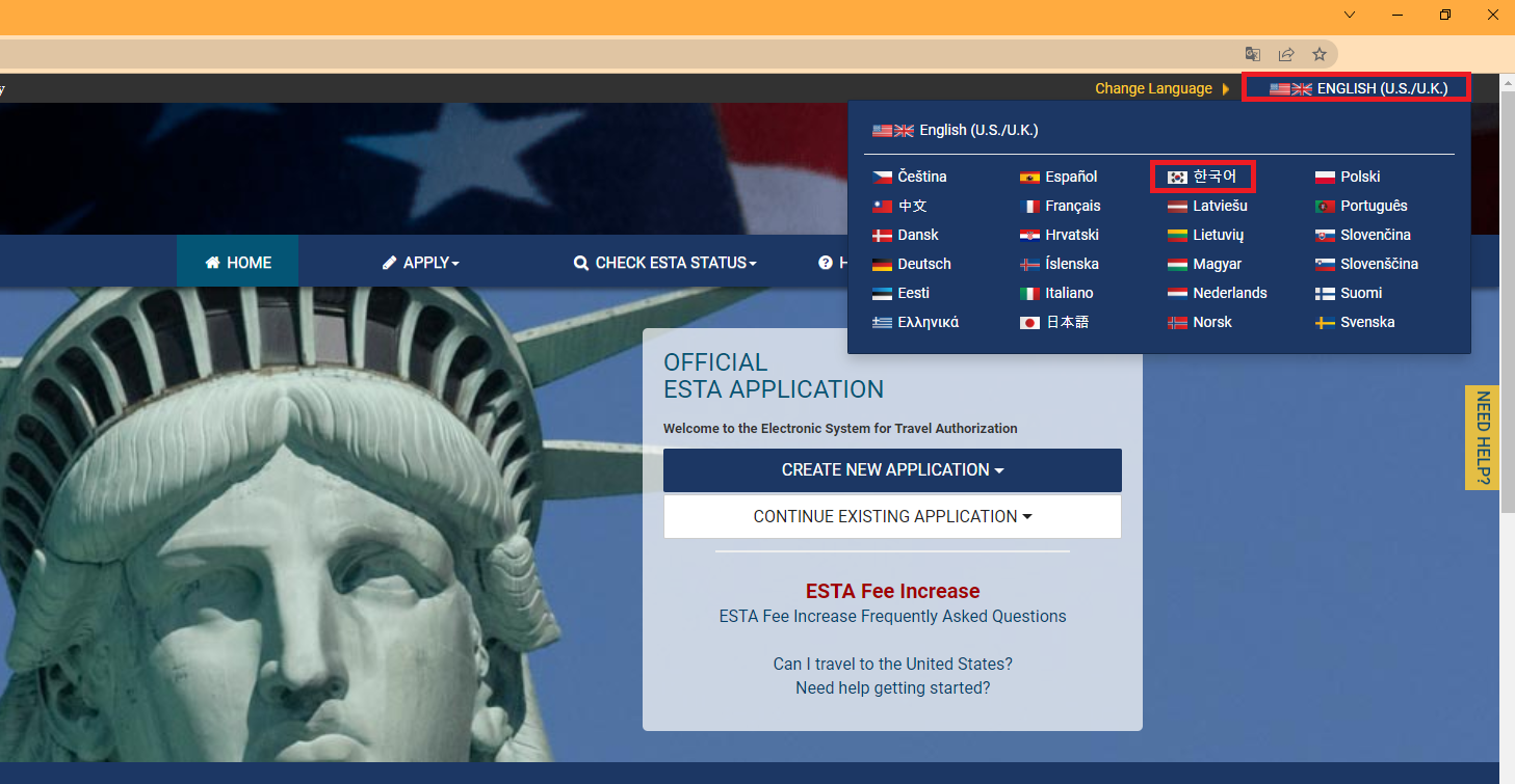 먼저 아래 url을 클릭하여 ESTA 홈페이지에 접속합니다.