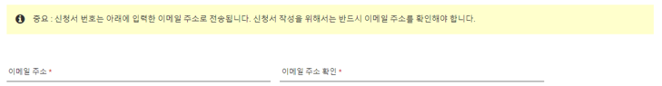 신청서 번호 및 신청결과가 이메일로 통보됩니다. 이메일 주소는 특히 더 꼼꼼하게 확인해주세요.