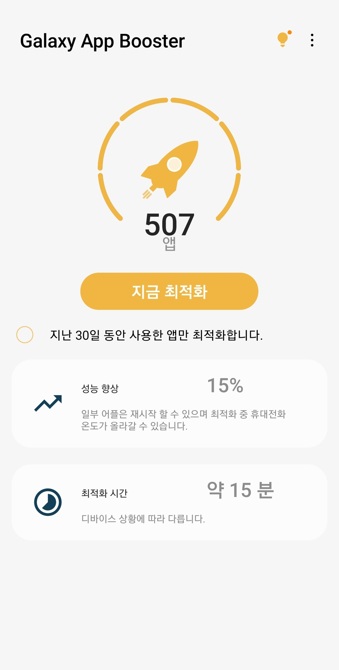2. Galaxy App Booster 기능 실행하기