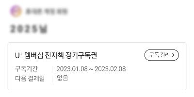 - 밀리의서재 구독권 자동결제를 신청한 상태인 경우에 LGU+ 정기구독권이 소멸되면 자동결제가 이루어지기 때문에, 구독권 사용 전에 자동결제를 해지해줘야합니다. 아래 화면의 자동 결제 관리 메뉴에서 해지할 수 있습니다.