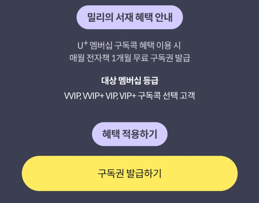 밀리의서재 U+ 멤버십 전자책 정기구독권 사용방법
