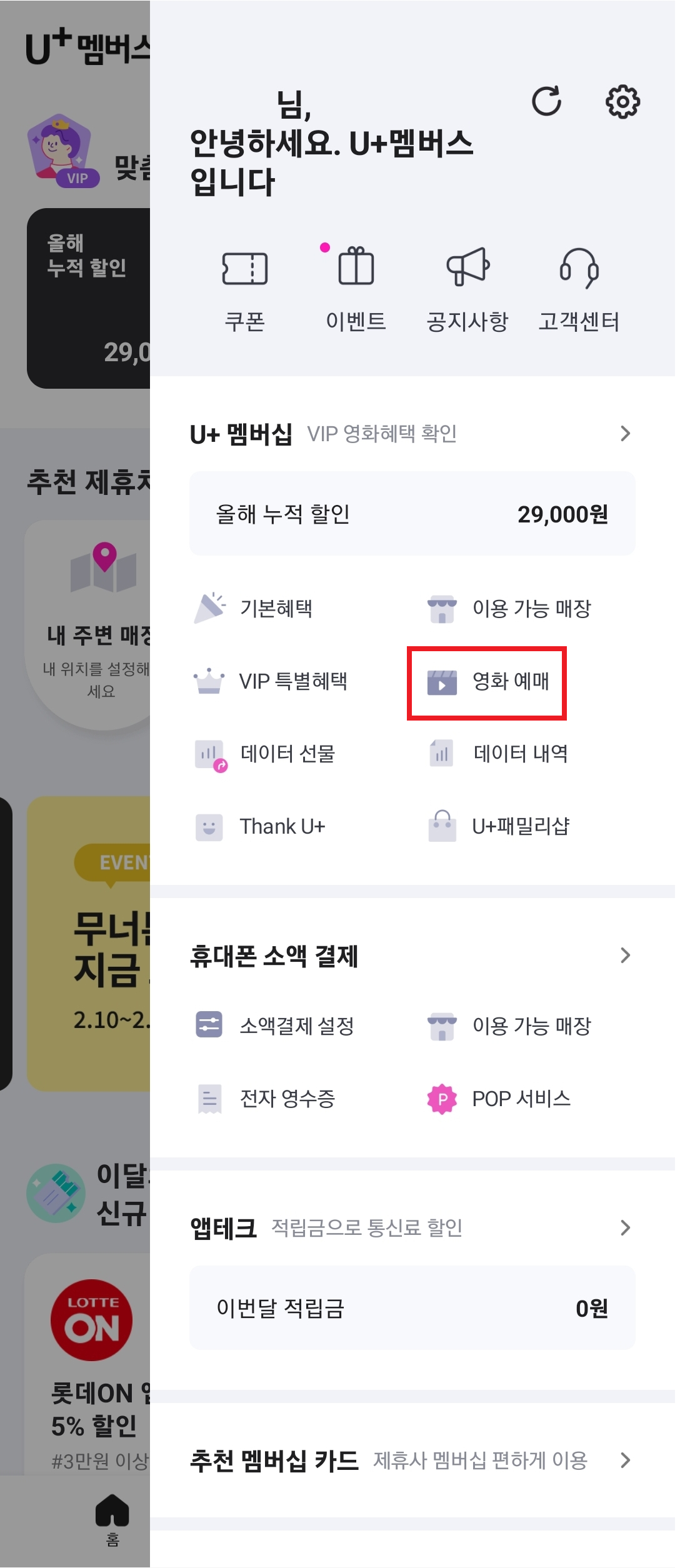 LGU+ VIP 특별혜택 영화콕으로 영화예매하는 방법