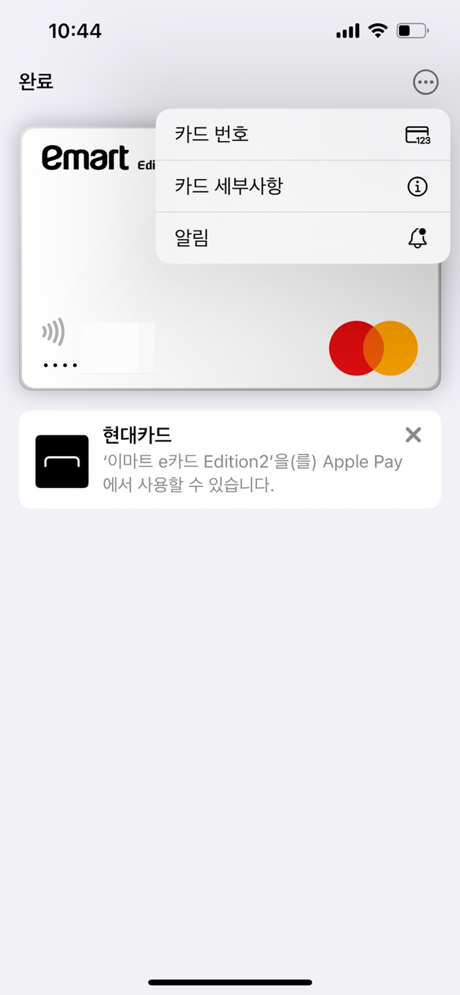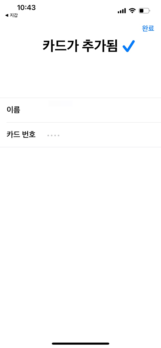 4. 다시 지갑 앱의 메인화면으로 돌아와서, 카드가 정상적으로 추가된 모습을 확인할 수 있습니다.