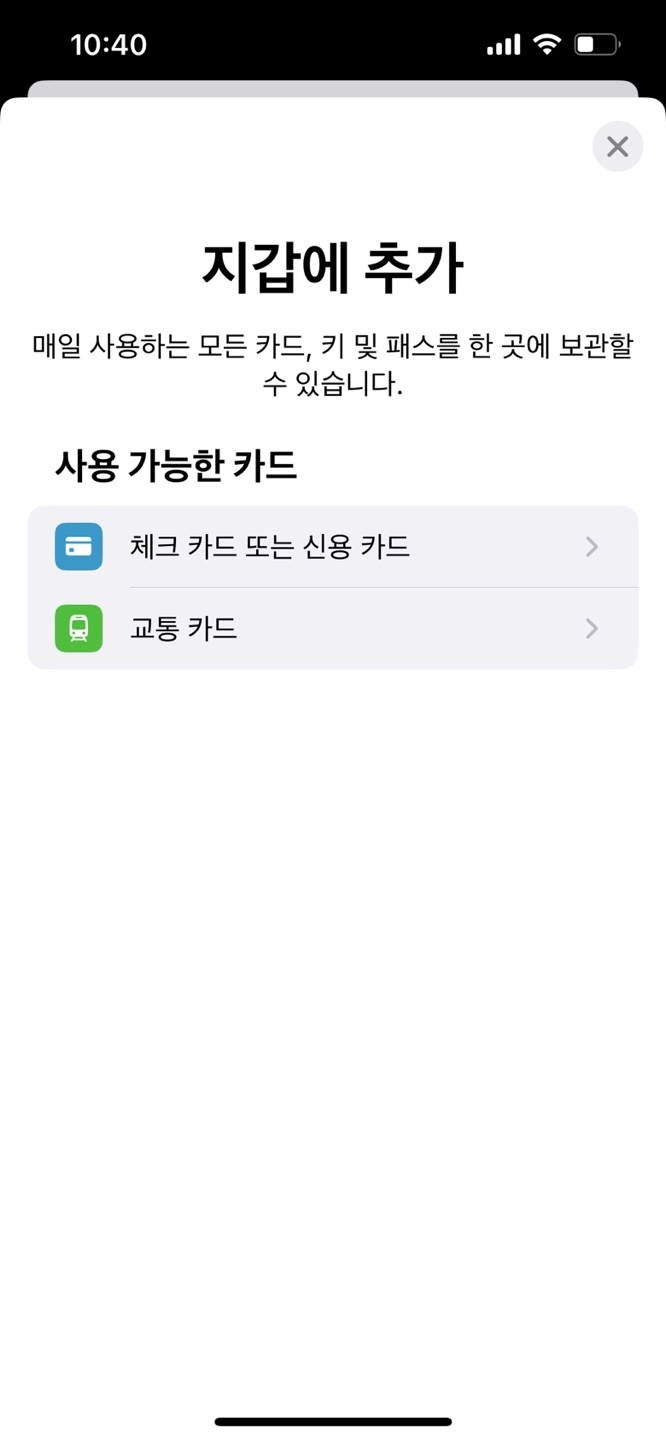 (주의하세요!) 아직 애플과 교통카드업체와 제휴가 맺어지지 않아서 한국에서는 애플페이를 통한 교통카드 기능을 지원하지 않습니다.