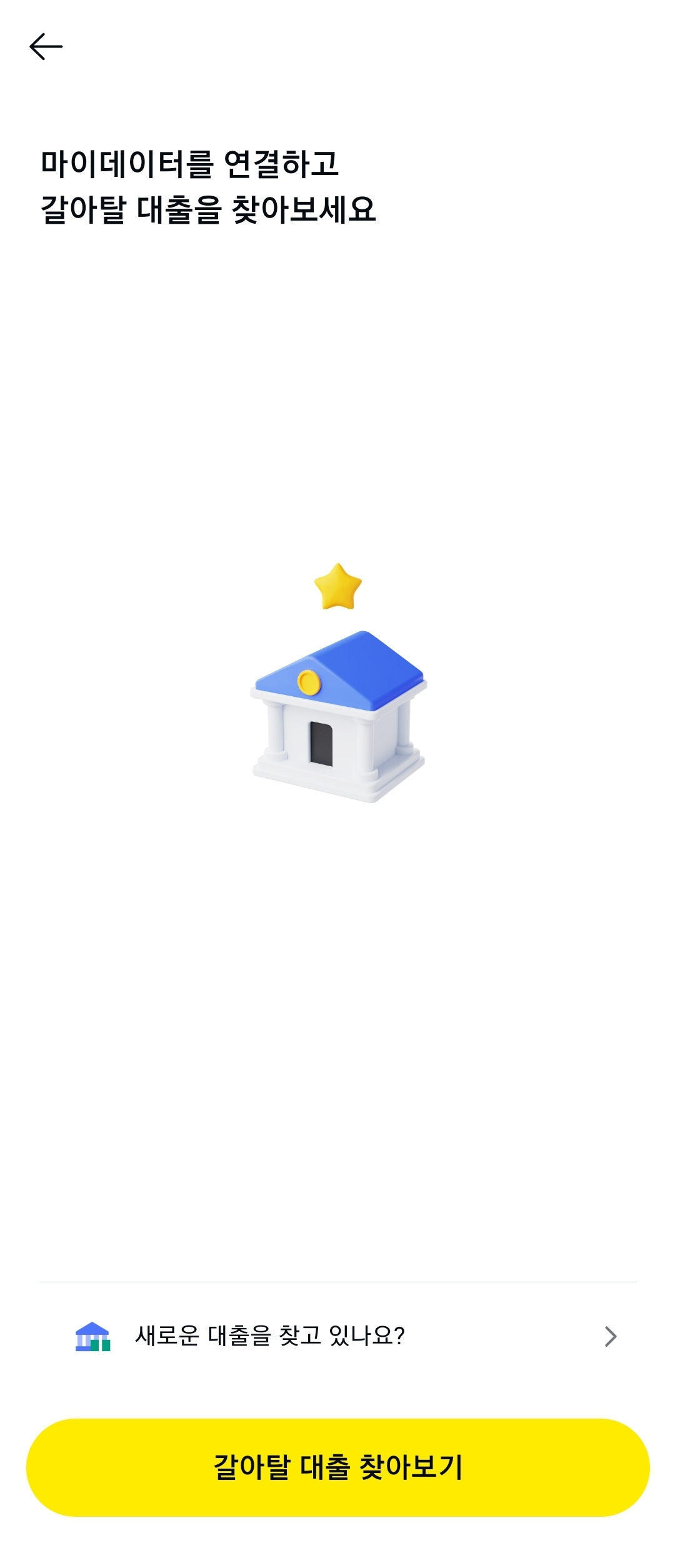 3. 필수 약관에 동의한 후 현재 가지고 있는 대출을 조회합니다. 이 때 기존에 마이데이터 연결이 안되어있는 상태라면 연결이 필요할 수 있습니다.