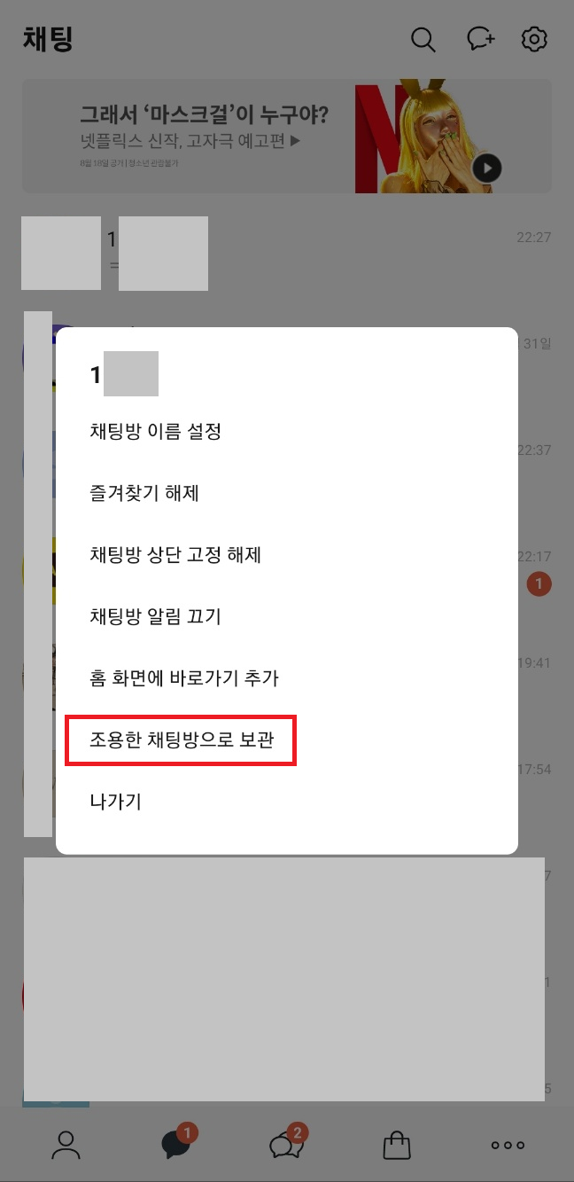 2. 조용한 채팅방으로 보관 클릭하기